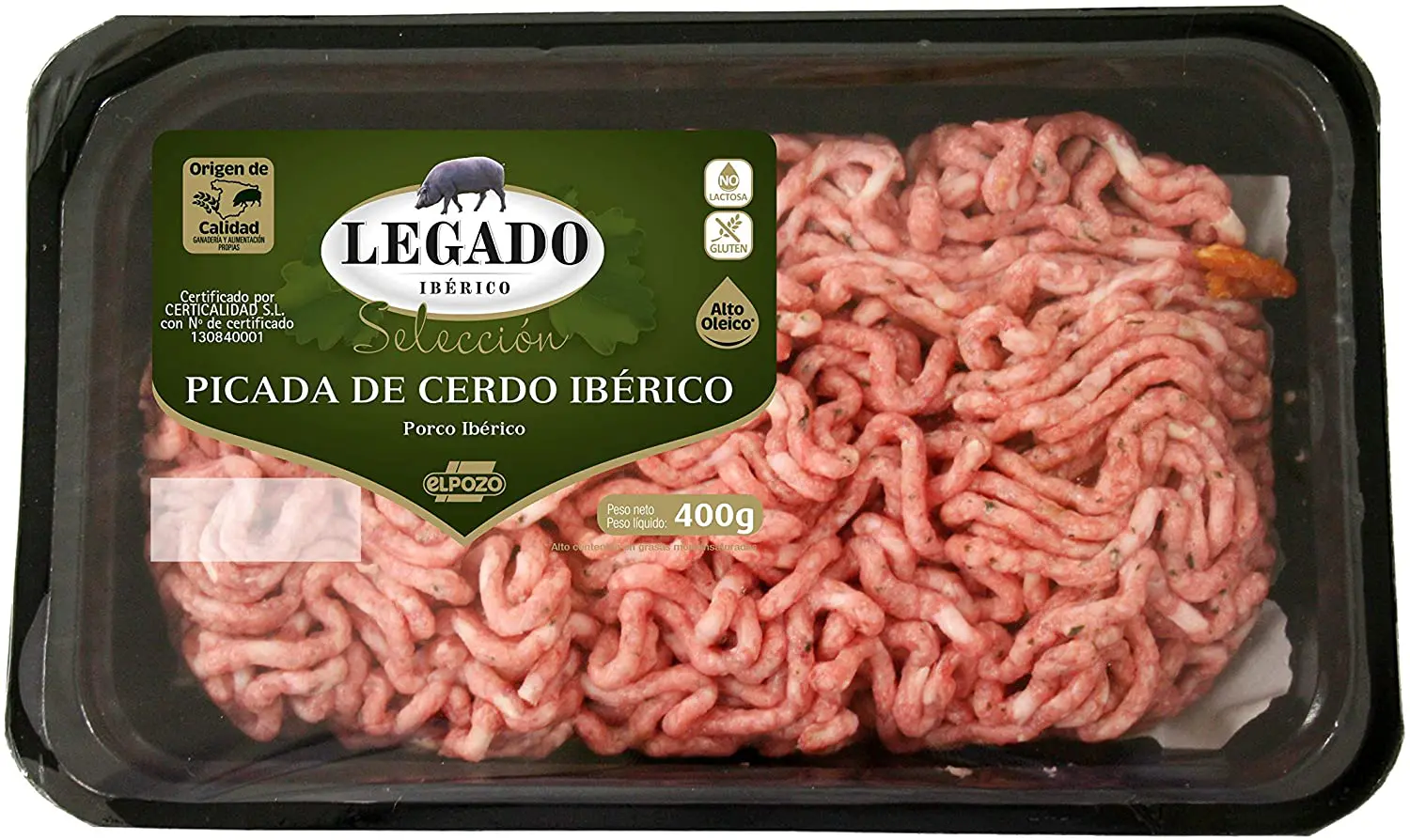 Magro cerdo ibérico(80%), cereal/vegetal 4%, agua, sal, proteína de soja, perejil, ajo, azúcar y especias naturales. conservador:e-221. antioxidante:e-301, e-330. colorante…
