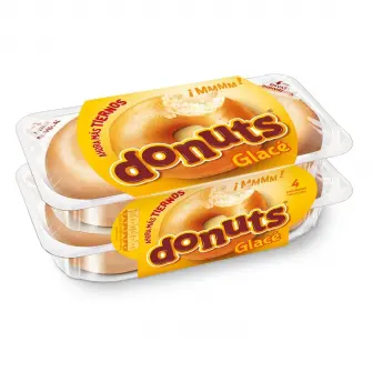 Masa (77%): Harina de trigo, huevo líquido pasteurizado, azúcar, agua, estabilizante (E 422), jarabe de glucosa y fructosa, leche desnatada…