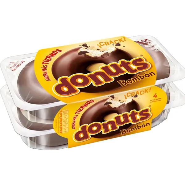 Rosquillas bañadas de chocolate DONUTS BOMBON 2 uds. 110 g. Aditivos Alimentarios: E-200 / E-300 / E-341i / E-412 /…