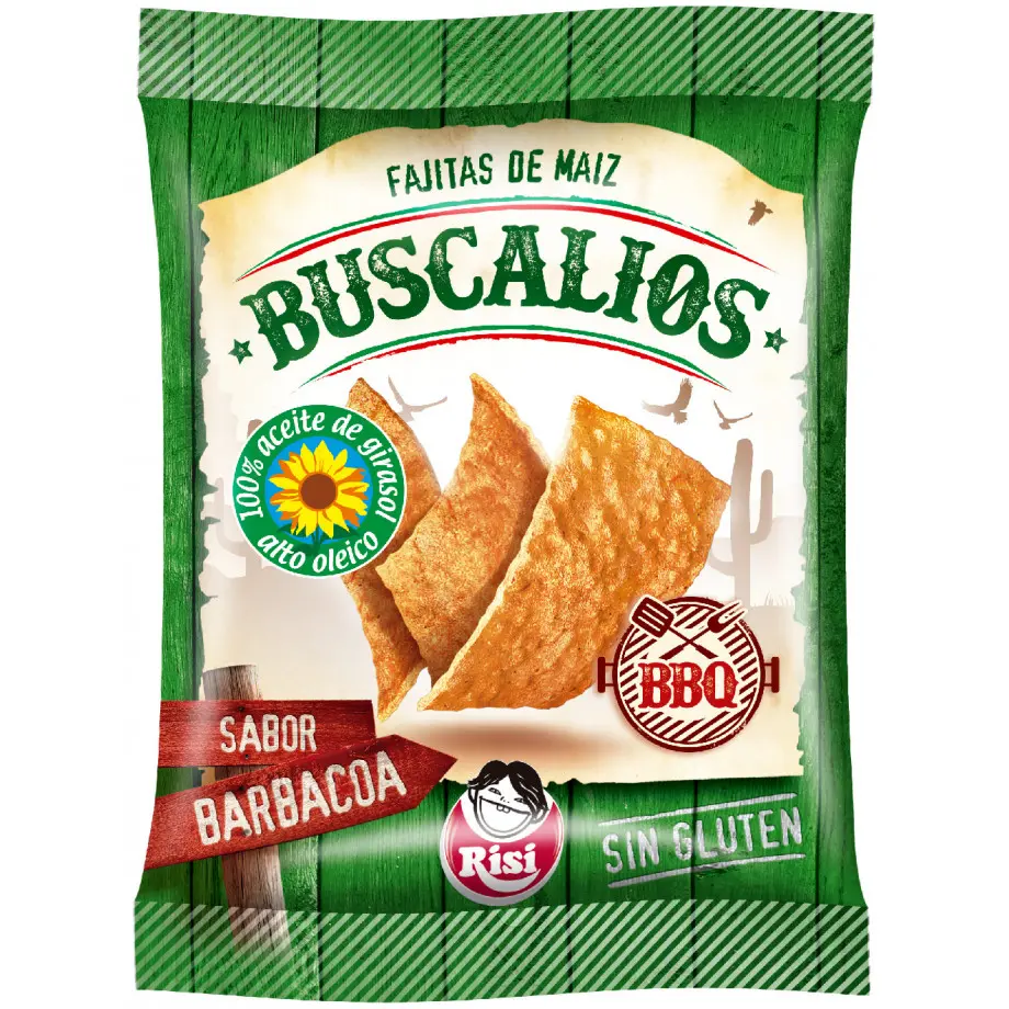 Maíz, aceite de girasol alto oleico (23.1%), aroma salsa barbacoa aroma, aroma de humo, azúcar, sal, potenciadores del sabor (E-621…